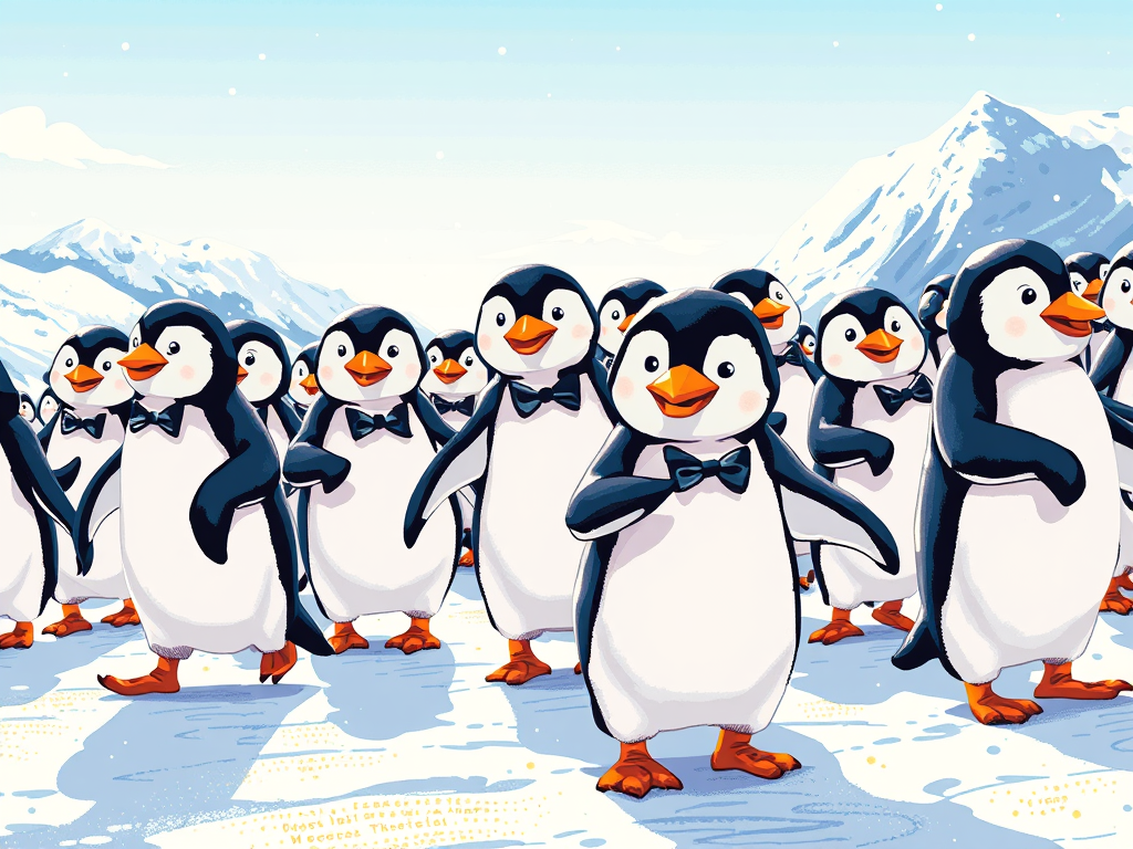 1. Penguin Conga Line: Penguins aren’t just walking—they’re conga lining across the ice! It’s like one gigantic, never-ending penguin party!